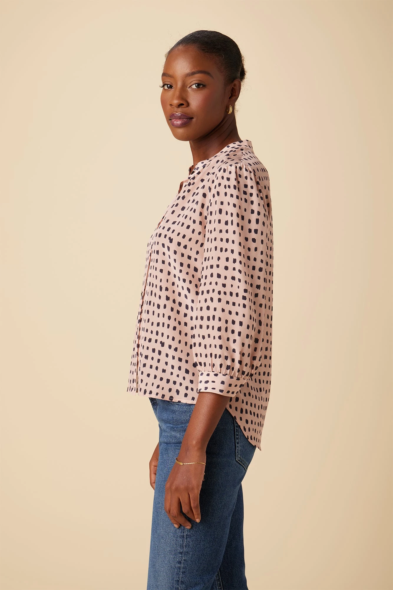 Charlotte 3/4 Sleeve Washable Silk Blouse – Valencia Dot Pink
