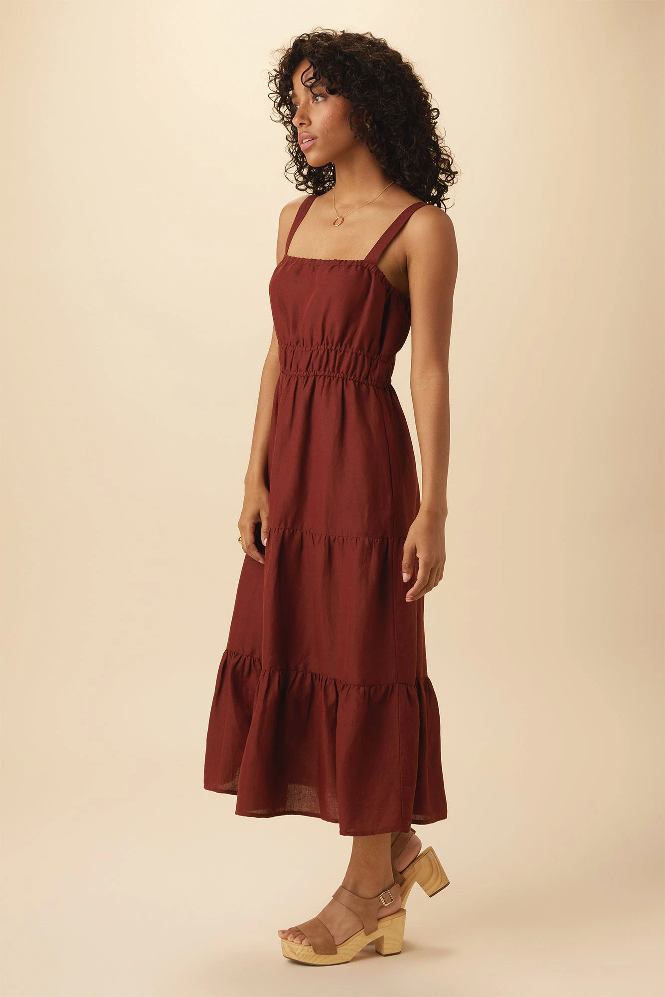 Elio Ramie Viscose Midi Dress – Rust
