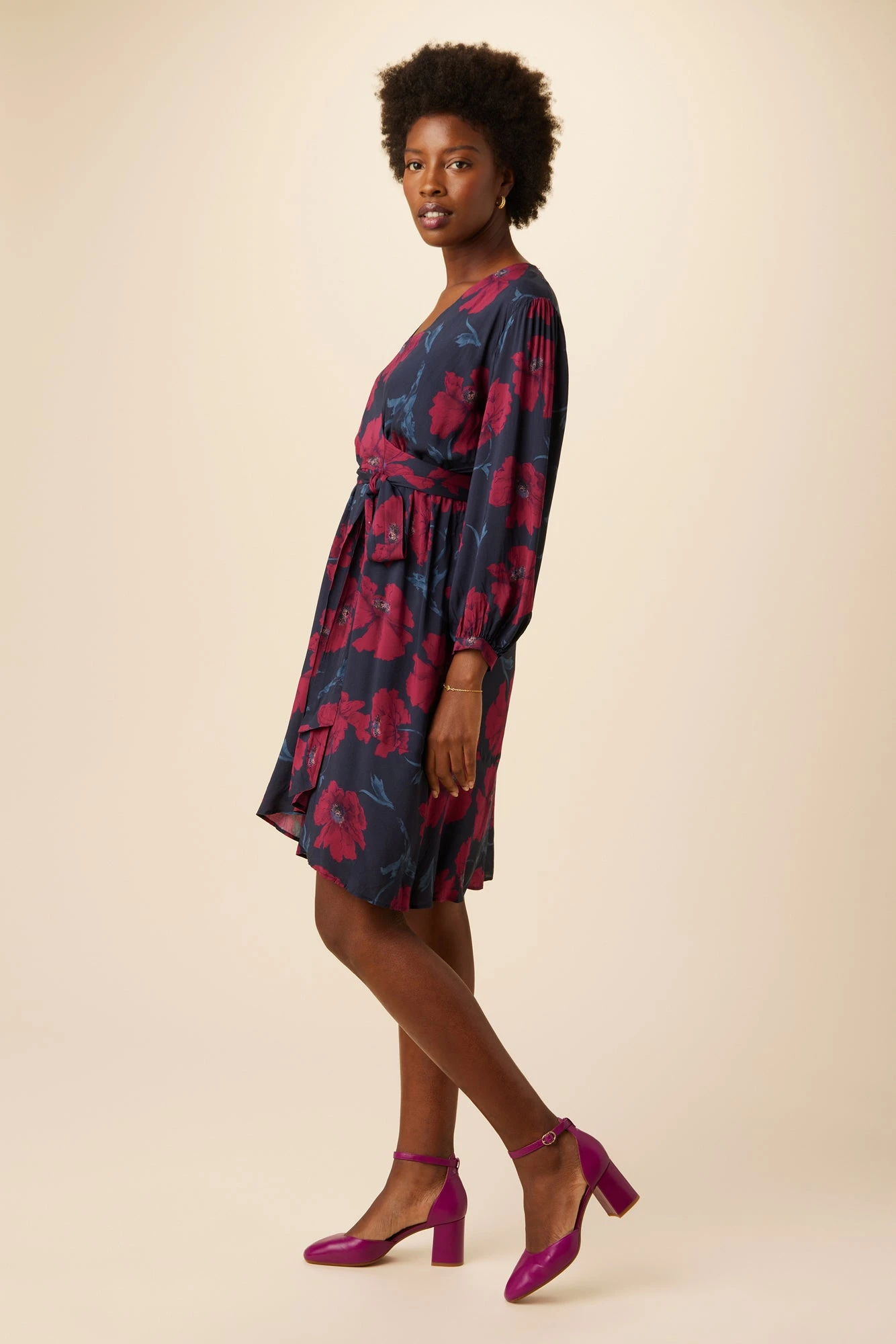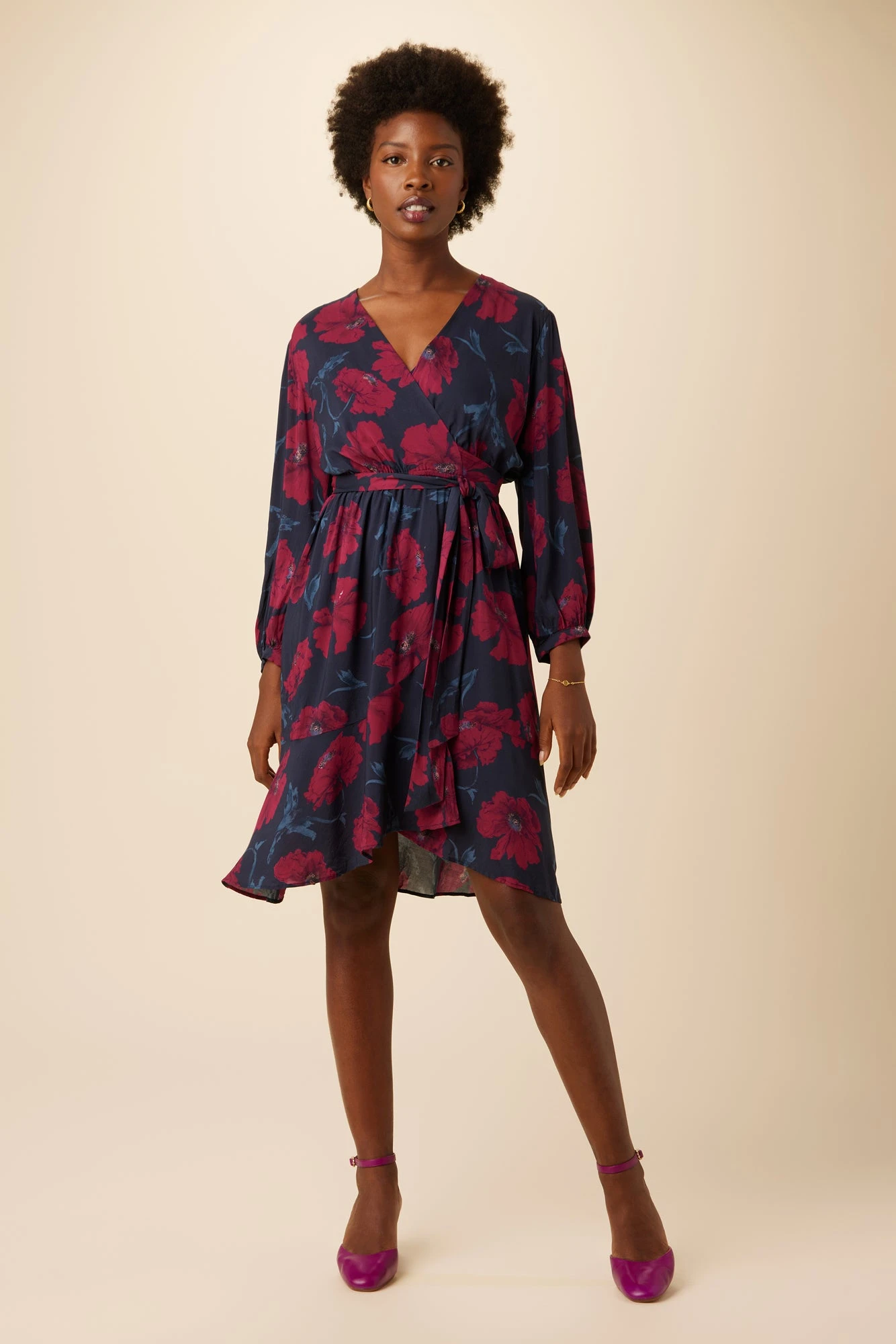 Wrap dress with adjustable tie waist, flounce hem and slip lining, made from sustainable ECOVERO™ Viscose fabric. This flowy dress is destined to become your new fall staple.