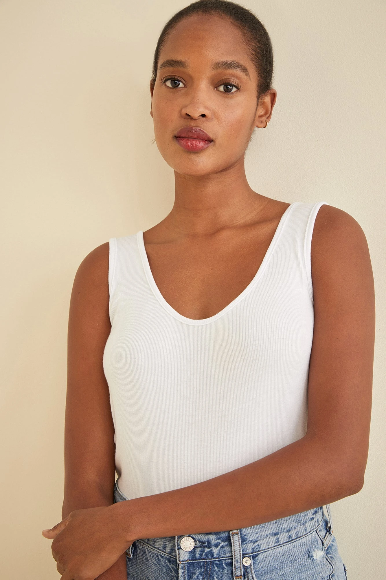 Layering tank with thick straps and a clingy fit. Made from our softest dream rib fabric, this tank is slinky, silky, and a little bit stretchy.